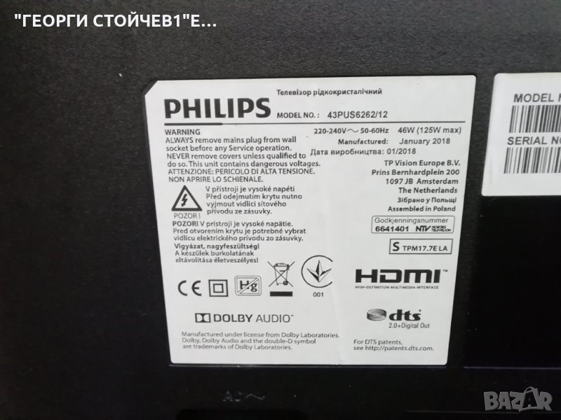 43PUS6262-12 715G8709-M01-B00-005K 715G8620-P01-000-002S TPT430U3-QVN03.U 55T32-C0F CTRL BD → Обява 29129907