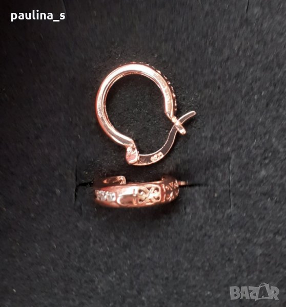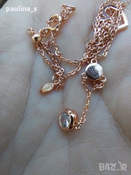 Изумително красив комплект от двуреден чокър "Сърце" със сърце и естествен циркон и сребърни обеци с циркони, в баня от 858 розово злато. Маркировката е двойна за колието е и с логото на дизайнера - от сайта на Пандора / Pandora и s925 - титър за съдържание на благороден метал в сплавта-