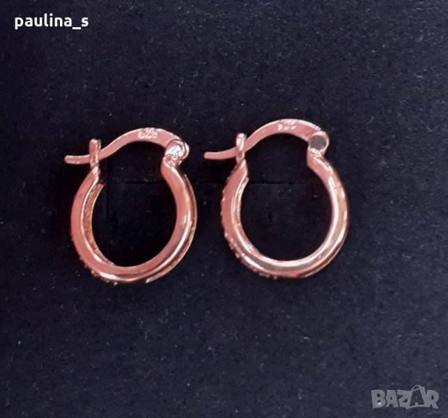Сребърен комплект s925 / Колие(чокър) и обеци / с баня от розово злато - 585
