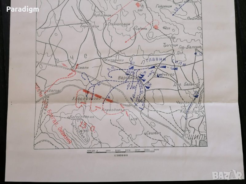 Стара карта, изобразяваща военните действия на конната атака при Варсаково на 05.10.1915г.