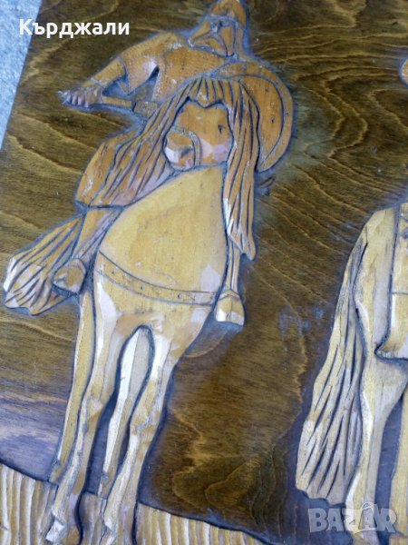2. Стара Дърворезба "Тримата Богатири". По едноименната руска картина. Размера е виден на снимките. 49 лв.