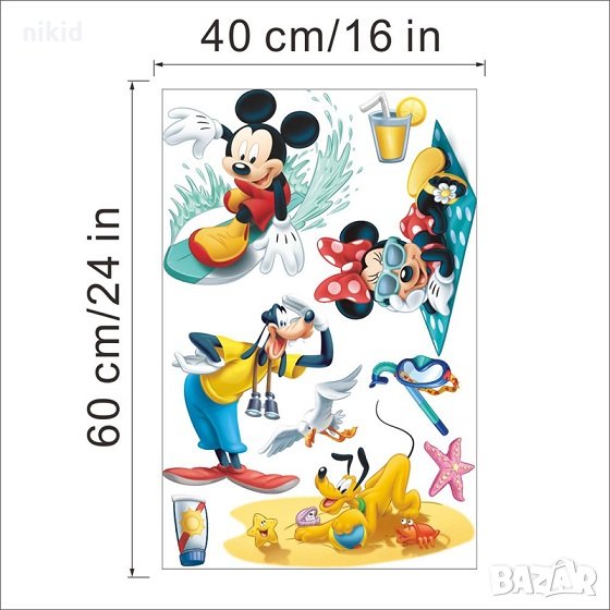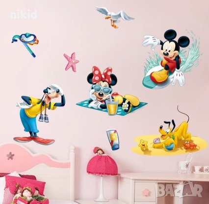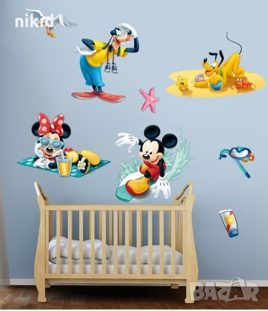 Мики и Мини Маус Доналд Плуто на море детски самозалепващ стикер за стена и мебел детска стая → Обява 29134547