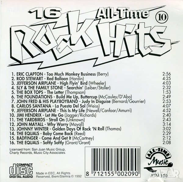 CD диск 16 All-Time Rock Hits 10, 1992