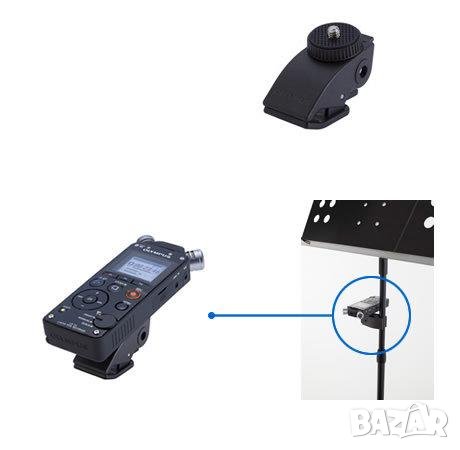 Предлагам специален държач на Olympus модел CL-2 конструиран за закрепване на диктофоните , микрофоните и фототехниката на фирмата към различни обекти. Щипката е направена от удароустойчив полимер и метал, като има мъжки порт за закрепване с резба ¼“ , която е стандартна за закрепване на подобни устройства.