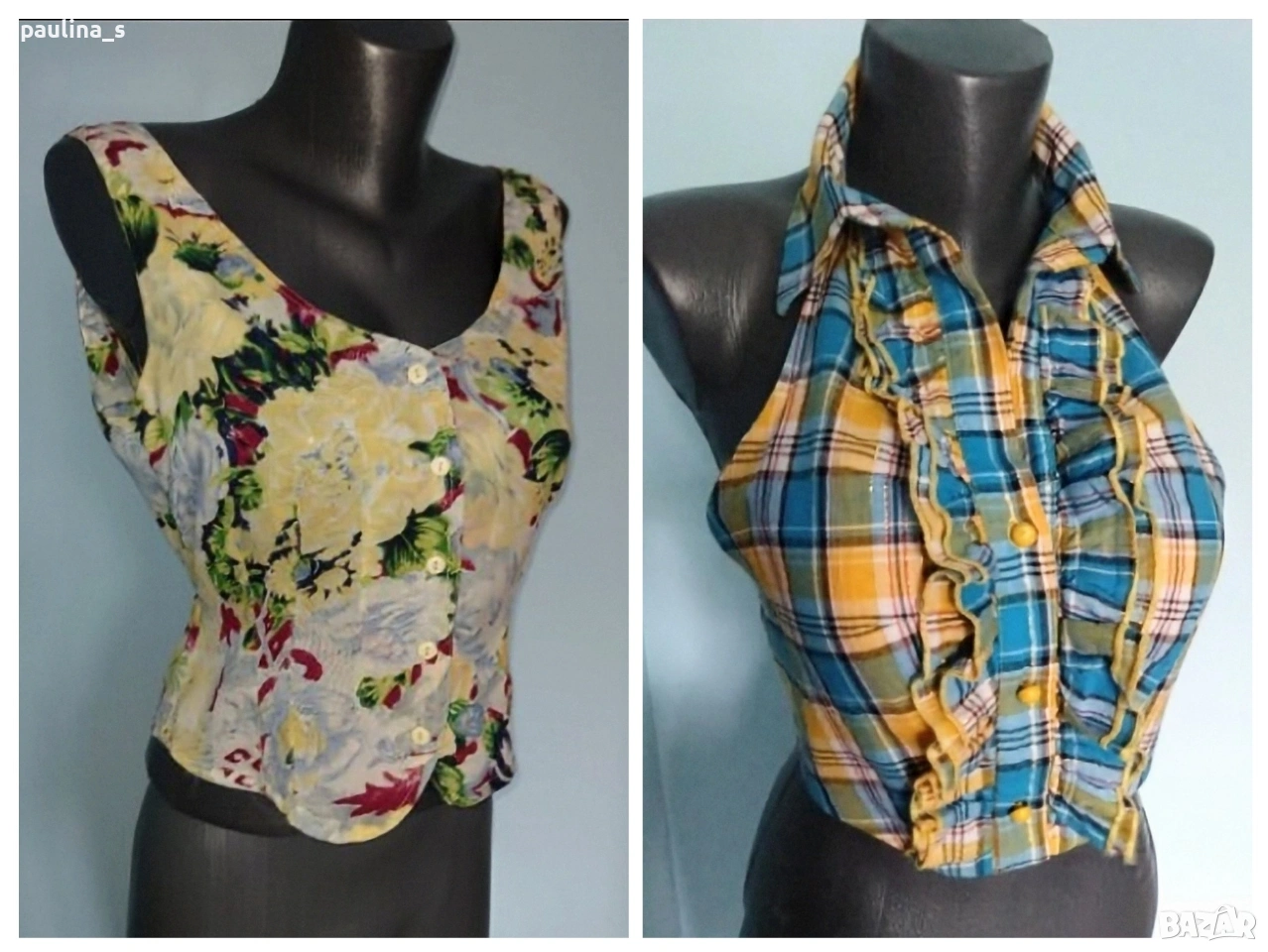 1️⃣ S / M - "Prizzi". Цената е крайна, без пазарлъци 15 евро. Пъстро бюстие или елек с регулируема талия. Тегелите са двойни около бието, бастите са маркирани същото. Материята е памук и вискозна коприна, може приятна за носене на голо тяло. Талията се регулира с шнурове. Изумителна дреха, не е ново, но е без дефекти.