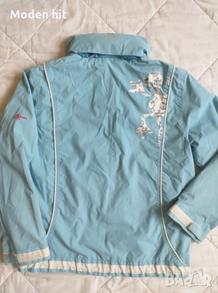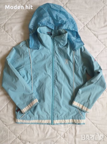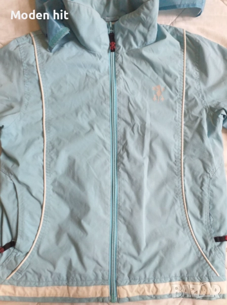 1. Цена 3 евро. Светло синьо яке XS-EXES. Непромокаемо и ветроустойчиво. С памучна подлата. Качулката се прибира в яката. С нормални следи от употреба. Забележка - едната лепка /велкро/ на ръкава е шита на ръка.