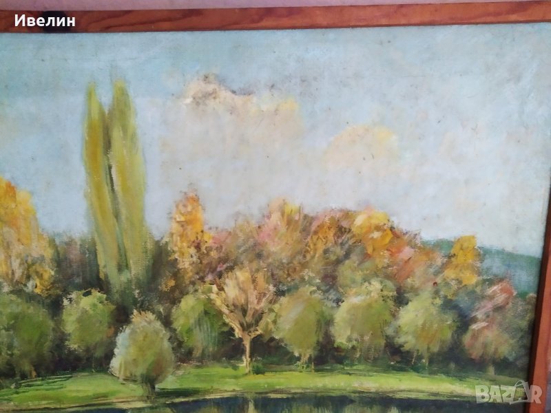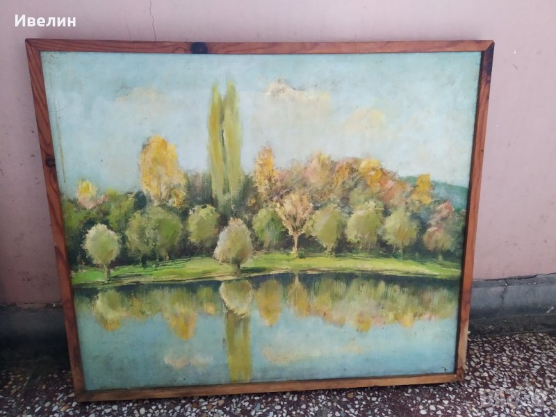 стара картина-пейзаж.масло на платно на подрамка,в дървена рамка с размери 57см/67см.