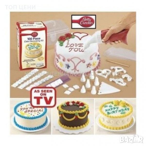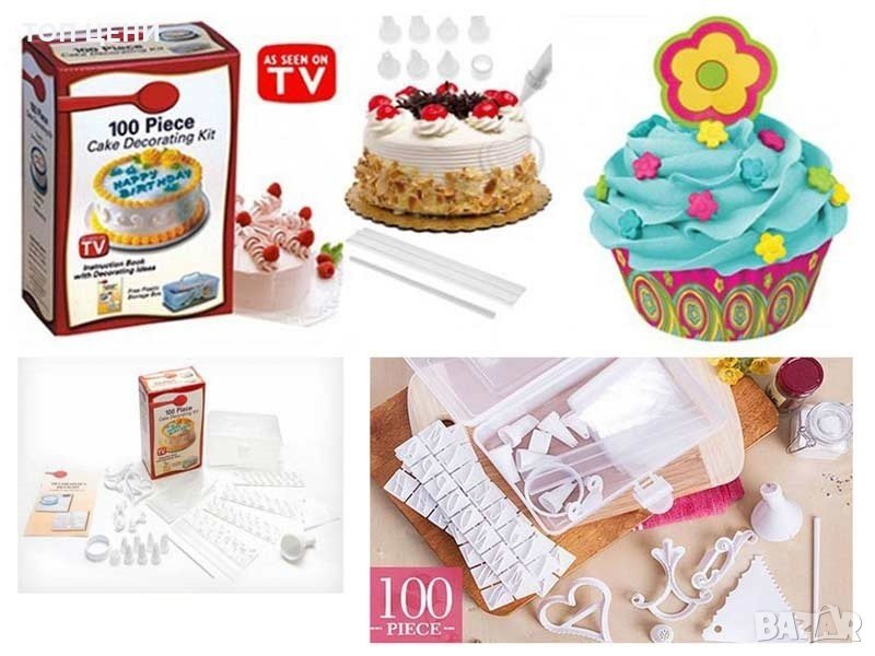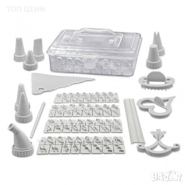 Комплектът съдържа 100 части и ти дава възможност за пълна свобода и развихряне на въображението. С него твориш сладкарски шедьоври с неповторими форми и цветове! Глазури, надписи, фигурки и геометрични елементи превръщат вкусната торта в празник за окото! С комплекта си професионалист в сладкарството!