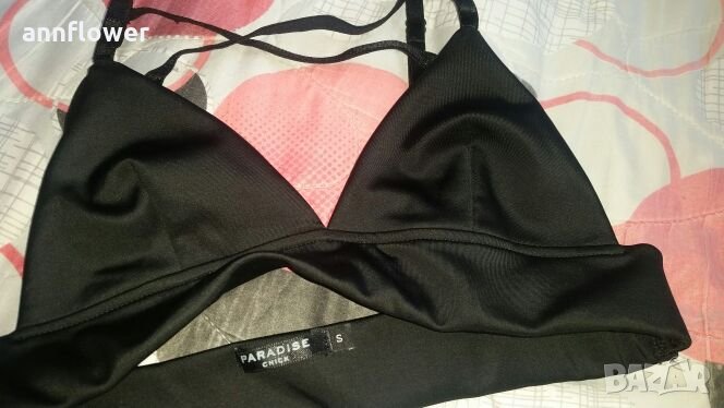Ново черно и оригинално. Обиколка 70см, чашка В и се разтяга. Няма етикет, защото е изпрано.
