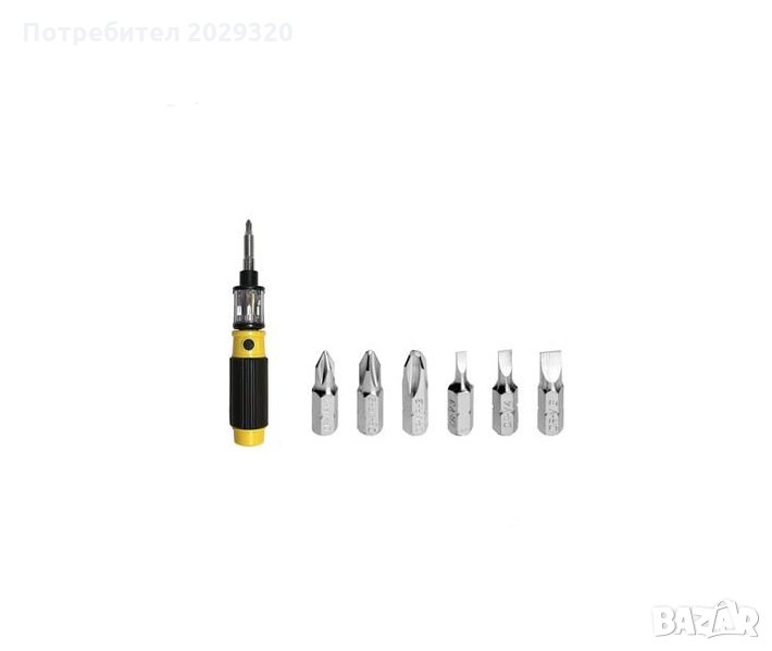 Мултифункционална отверка 6 в 1, BIT360, иновативно превключване с едно завъртане, жълто и черно