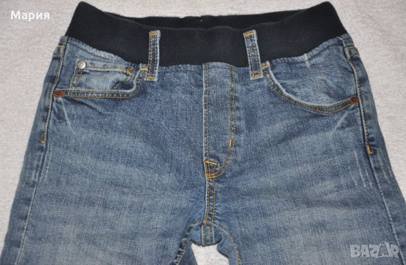 1. Цена 5 евро. Дънки H&M. По етикет са размер 122 см./6-7 г. Като нови. 99% памук, 1% еластан. Могат да се носят и с навити крачоли. Дължина по външен шев 82 см., дължина от чатала 59,5 см.; талия /ластична/ от 29 до 38,5 см.; ханш от 38 до 44 см.