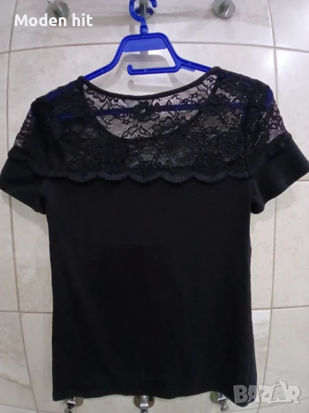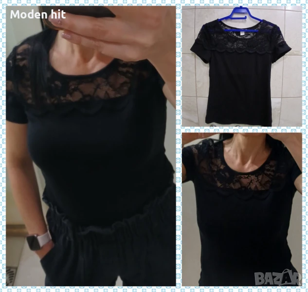 2. Цена 3 евро. H&M черен топ/тениска с дантела. По етикет е размер EUR S Дължина 59,5 см. Гръдна /едностранно/ от 39,5 до 60 см.