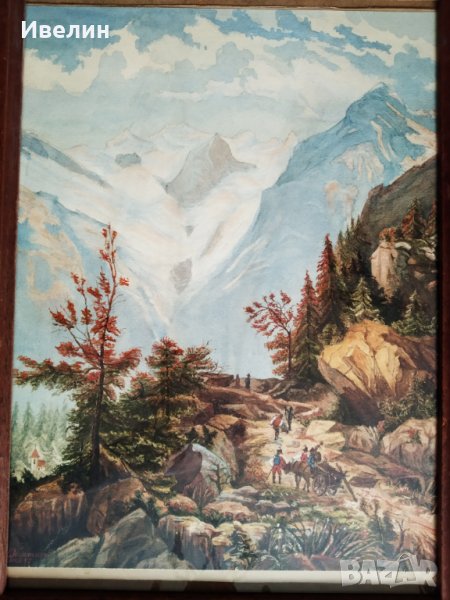 картина-пейзаж,подписана.техника акварел в дървена рамка със стъкло.размери на рамката 39см/29см.