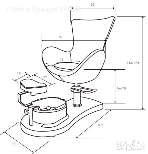 Комфортен стол за педикюр с ваничка и вградена поставка за крака Crem