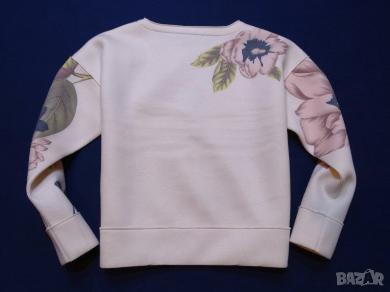 Блуза от мека неопренова материя, свободен модел с флорални мотиви, състояние ново, без етикет, без каквито и да било забележки, много красива с дължина от рамо-57см, паднал ръкав дължина-48см, подмишници-57см, най-долу-48см със състав-88% polyester, 12% viscose