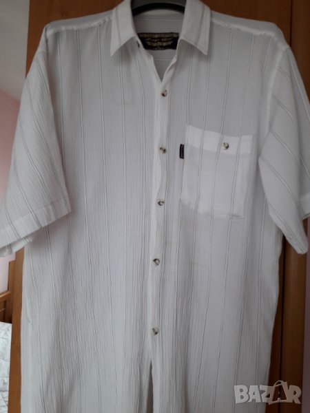 Мъжка риза къс ръкав от кенар бяла размер L → Обява 29160982