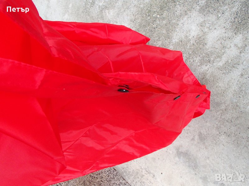 Продавам нов лек армиран (рипстоп) шушляков компактен дъждобран пончо с лепени шевове. Платът е як с нишка за здравина. Тежи 285 грама. Пакетиран е 15х9х5 см. Има копчета отстрани. След откопчаване става на платнище и има кукички за опъване. Цветове: червен, зелен.