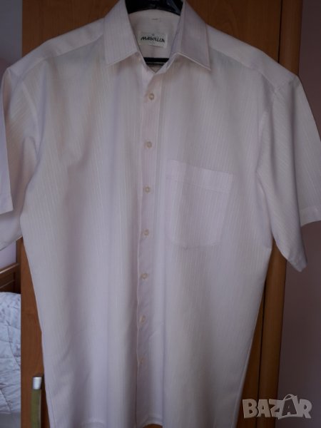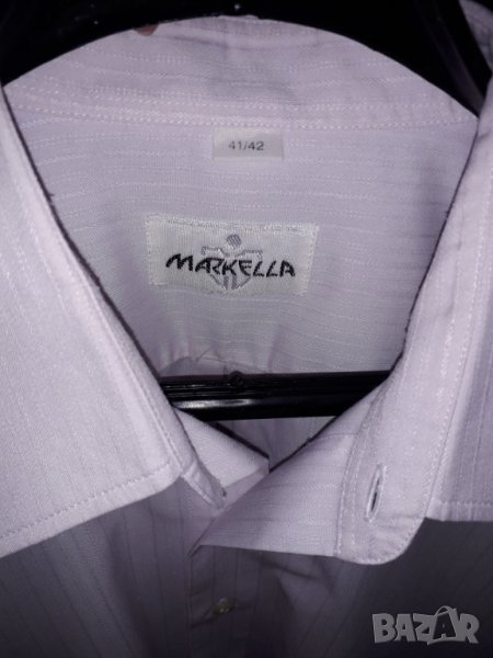 Мъжка риза къс ръкав Markella светлолилава, с 1 джоб, от много хубав плат 33 % памук и 57 % полиестер, размер 41/42, или ХЛ-2ХЛ рамене 54 см, гърди отпред 62 см, дължина - 75 см, ръкав 27 см. Ризата е нова, само е пробвана, но ми е голяма. Отговарям на съобщения тук, изпращам с куриер с отстъпка, преглед и тест, или лично предаване в София.
