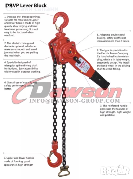 Верижна лебедка с тресчотка от 1000 кг до 5000 кгВерижна лебедка с тресчотка WLL 250kg-9000kg височина на повдигане по желание на клиент