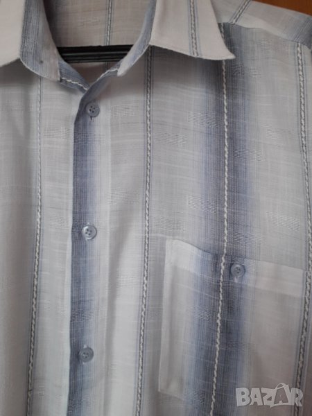 Мъжка лятна риза къс ръкав на райета в синьо и бяло → Обява 29163111