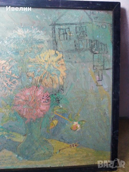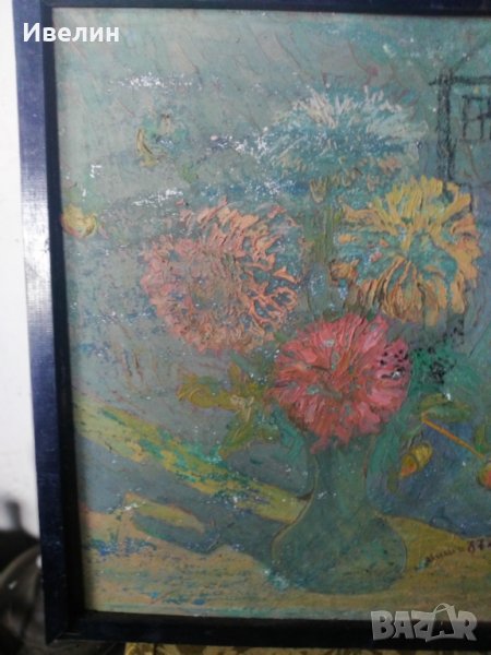 картина-пейзаж,подписана.смесена техника на шперплат в дървена рамка с размери 52см/53см,състояние видно на снимките.