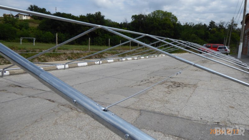 Този модел съдържа допълнителни метални обтегачи, които се монтират на покрива - увеличават стабилността на конструкцията и предпазват брезента при снеговалеж.