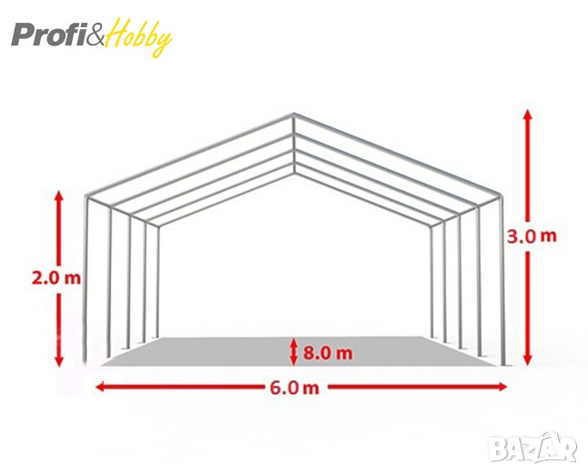 Професионална шатра 6х8м, водоустойчив PVC брезент 500гр/м2