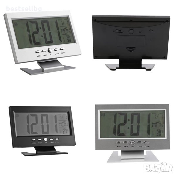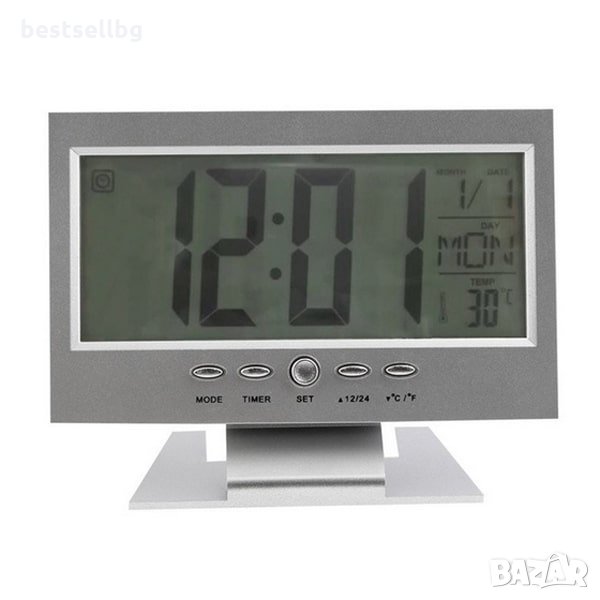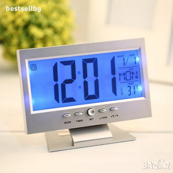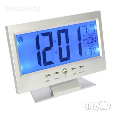 Електронен настолен светещ часовник с гласов контрол, аларма, органайзер, час, дата, температура и голям дисплей DS-8082