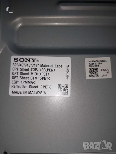 Телевизора е със счупен дисплей. MAIN board 1-981-541-21 (173641421) цена 80 лева. Power supply LK 1-981-455-11(173638611) цена 35 лева. Подсветка Sony 17y 40_7020_24_REV02_160720 цена 30 лева на лента, двете заедно за 50 лева.