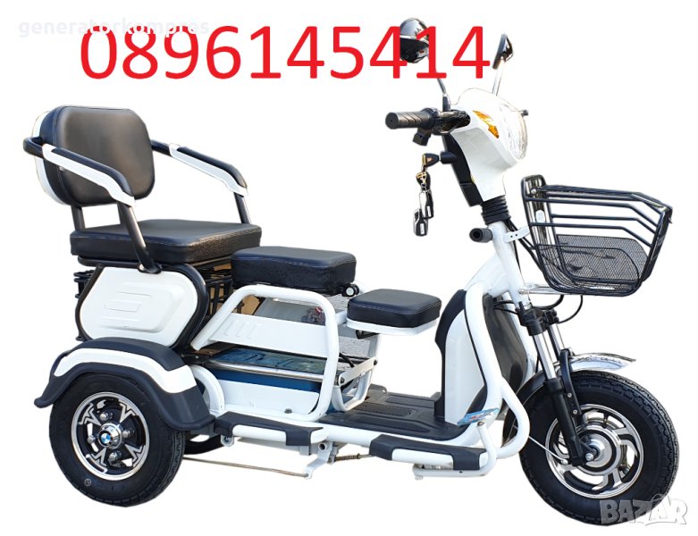Предлагаме на Вашето внимание уникална двуместна триколка EGV C1 – без аналог на пазара.Триколката е с дигитално табло, три нива на скоростта, стопове, мигачи и габарити,LED фар.Предна и задна ръчни спирачки.Крачна спирачка.Голям кош за багаж.Триколката е с вградена втора седалка за допълнителен пасажер, като самата седалка се движи във височина, което създава удобство за нисък или висок човек.