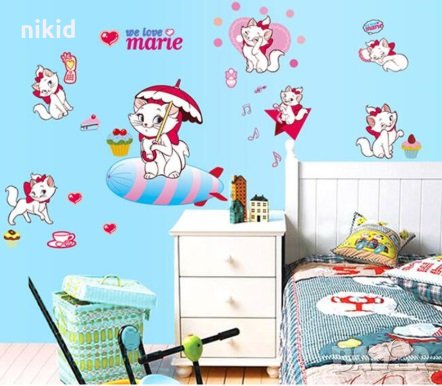 Коте Мари Marie стикер постер лепенка за стена и мебел детска стая самозалепващ → Обява 29187768