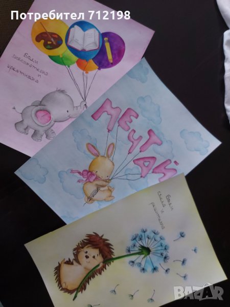 Рисувам картини за детски стаи и кътове за игра. Използвам различни размери платна, бои, моливи, пастели. Цената зависи от големината. За повече информация на лично съобщение.