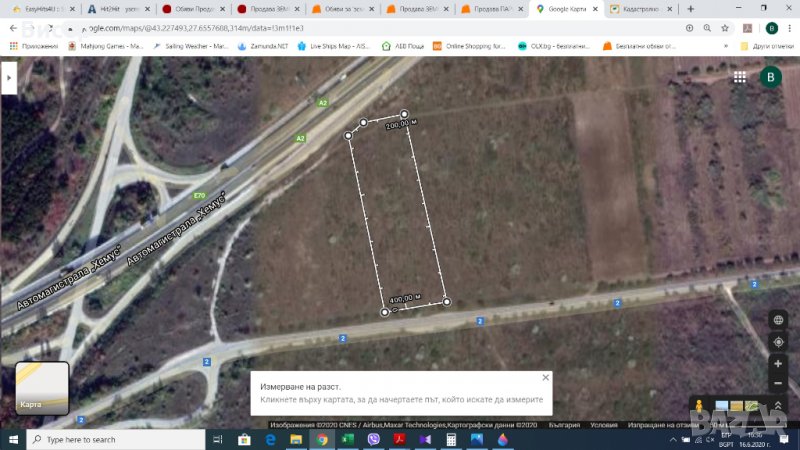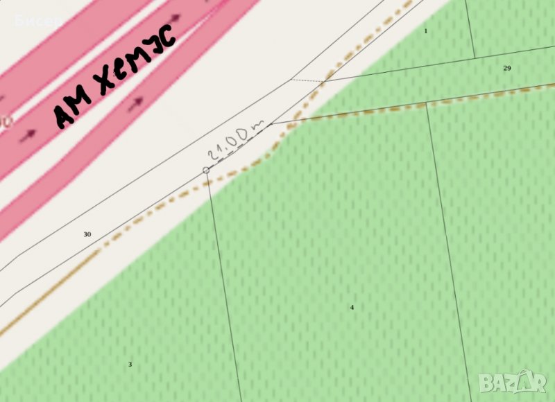 4,5км. През част от парцела минава подземен газопровод. След приспадане на