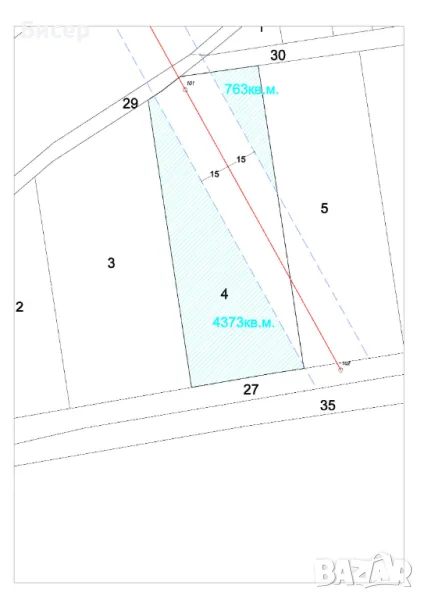 регламентираните отстояния, площта без ограничения остава 5136 кв.м (4373+763).
