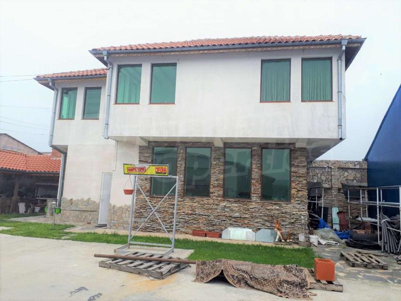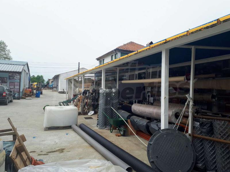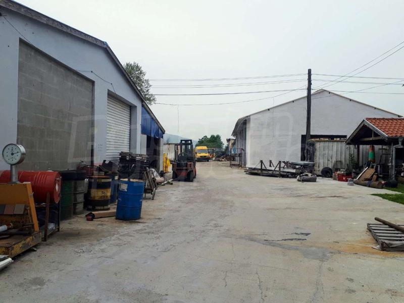 Съществуващите постройки са със застроена площ от 3000 кв.м. масивно производствено хале, двуетажна къща, 3 постройки от термопанели.