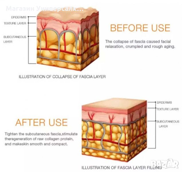 4. Поддържа SMAS слоя - Активира колагена под дълбоката кожа, за да поддържа SMAS слоя. Редуцира бръчките;