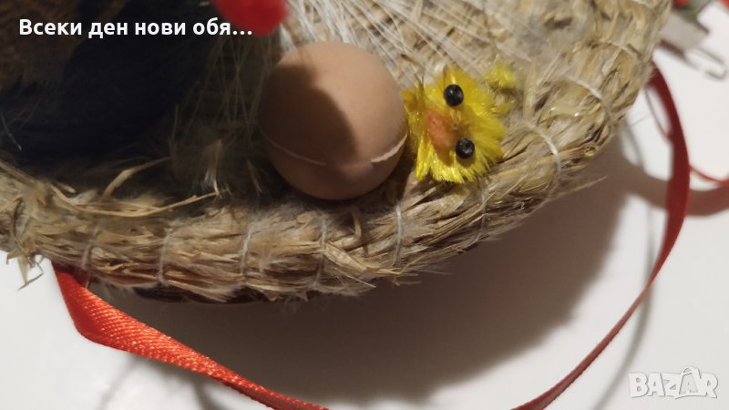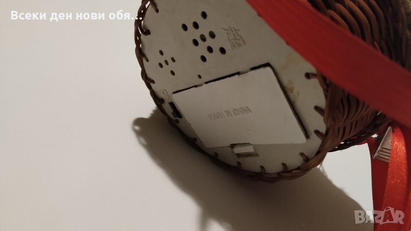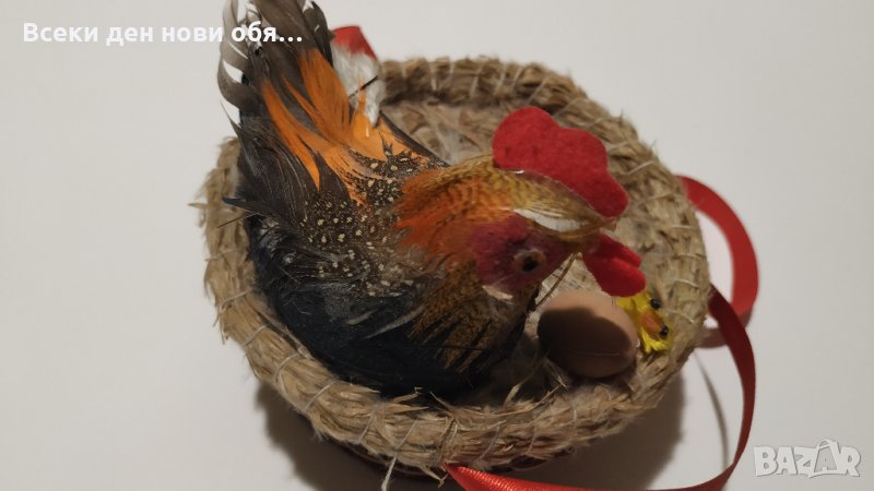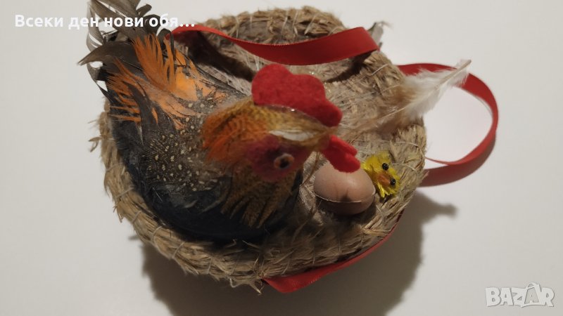 Предлагаме кошничка с петел и малко излюпено пиленце, ръчна изработка. Отдолу има звукова индикация която когато е включена се чува звук на кукуригащ петел. Бъдете винаги първи, най-ранобудни :)