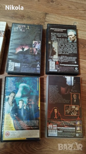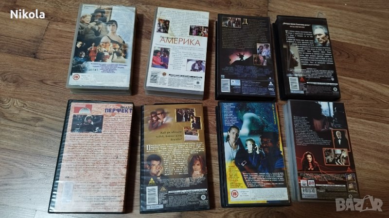 Продавам 8 броя видео касети система VHS с различни филми, екшъни, комедии, трилъри и др. Цената за брой е 8 лв. Ако се закупят 8бр- Цената е 75лв. Касетите са в кутии и с обложки.
