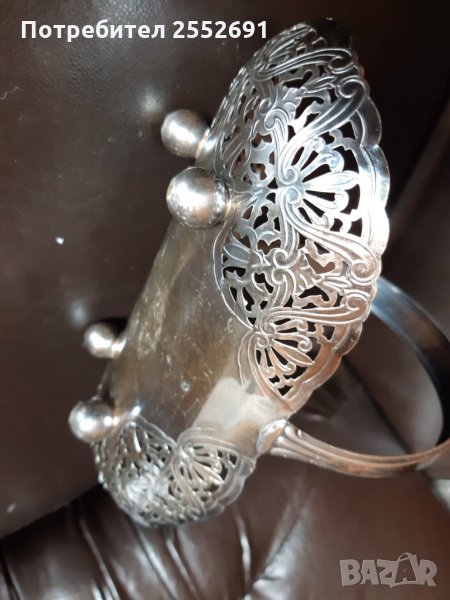 Красива, ажурна,посребрена бонбониера с фирмен знак. Р-ри16/12/20 см.