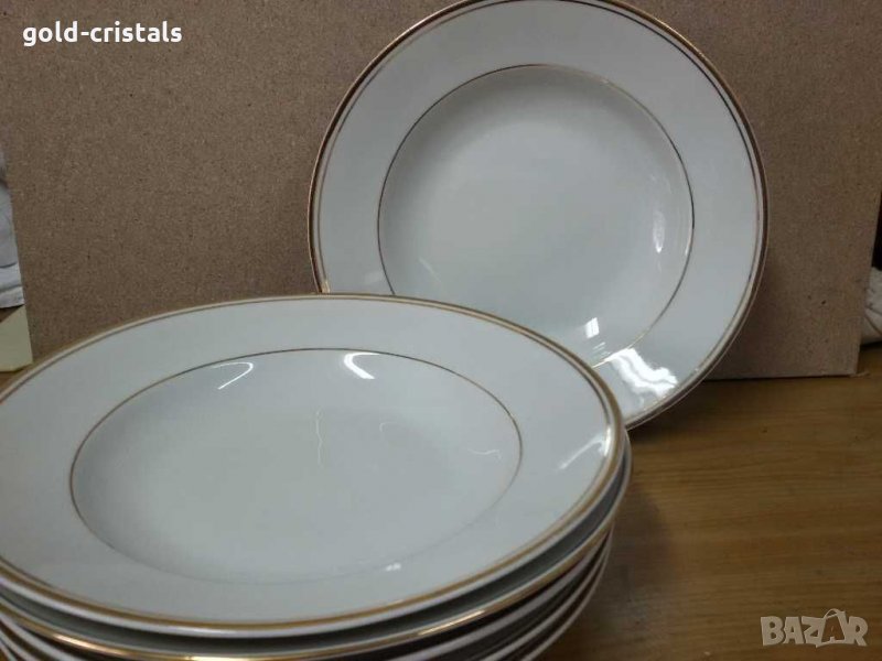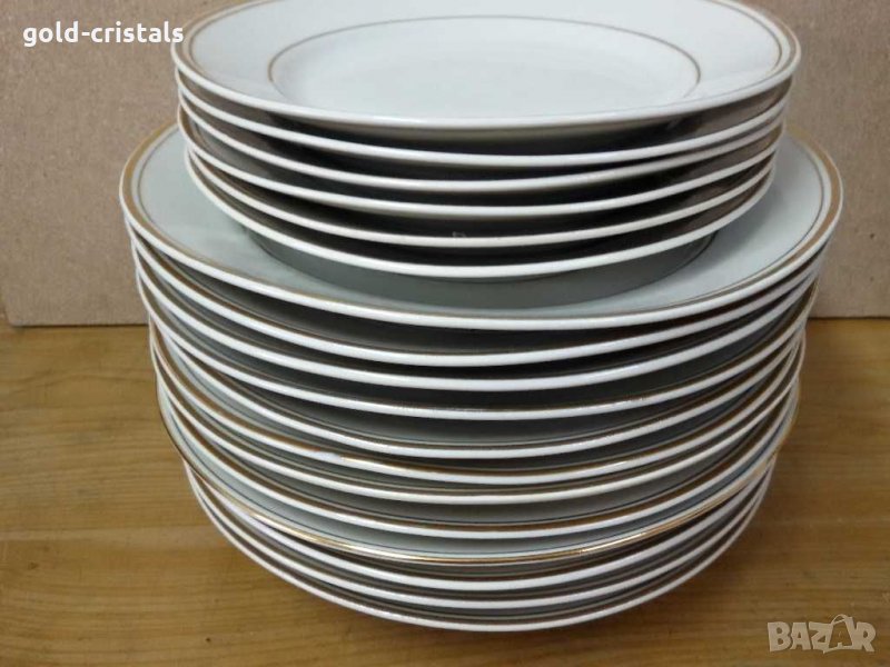 стар български порцелан китка сервиз за хранене порцеланови чинии с златен кант плитки за основно 6 бр-24€ големи дълбоки 6 бр -20€ плитки за предястие 6 бр-20€ и голямо плато елипса 1бр -15лв неизползвани без забележки комплект сет лот ретро арт декор винтидж колекция стари антикварни предмети обзавеждане за дома и семейството подходящи за подарък за ценители и колекционери