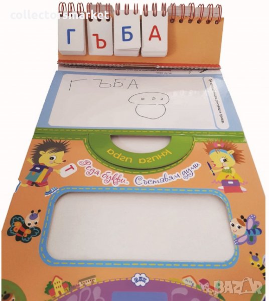Думичко е приготвил шест колонки с картончета, всяка от които съдържа всички букви от азбуката. С помощта на картончетата могат да се съставят различни думи с по 3, 4, 5 и 6 букви. На гърба си книжката има бяло изтриваемо поле, върху което многократно може да се пише и трие.