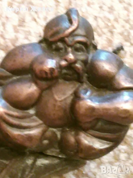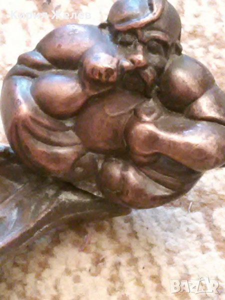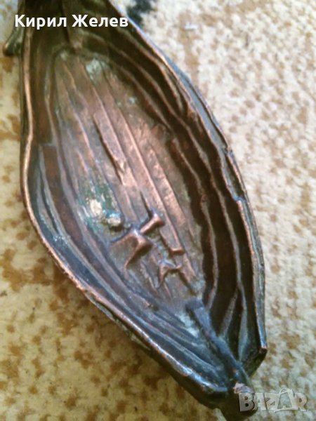 Здрав красив запазен интересен широк е 8 см дълък е 18 см висок е 9 см метален мед бронз
