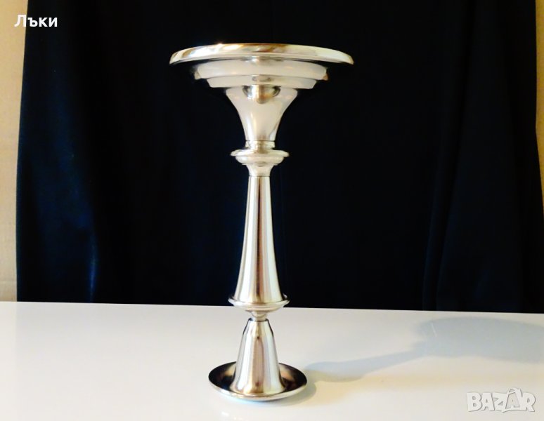 посребрен с висока проба сребро.Височина 20 см.,диаметър на основата 11 см.,тегло 350 гр.
