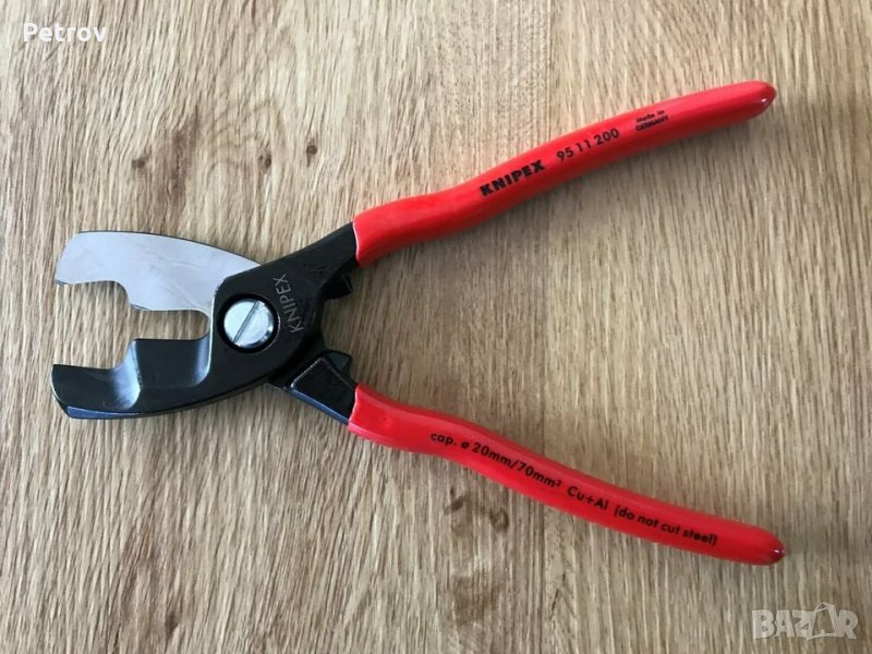 **************** ORIGINAL - KNIPEX 95 11 200 - MADE IN GERMANY - 200 mm дълги ВИСОКОКАЧЕСТВЕННИ ПРОФЕСИОНАЛНИ Ножици с двойно острие за рязане на Медни (Cu) и Алуминиеви (Al) кабели с диаметър 20 mm / квадратура 70 mm² от K N I P E X - MADE IN GERMANY !