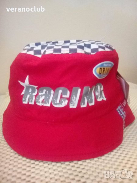 Червена Детска лятна шапка за горещите дни - шапка Racing /състезание с колички/ , иидиотка - шапка с малка периферия, детска лятна памучна шапка.