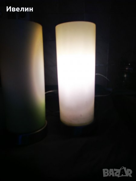 две настолни лампи в арт стил.метална основа, стъклен корпус.високи са 28см,диаметър 10см.цената е за двете.само едната е 25лв,