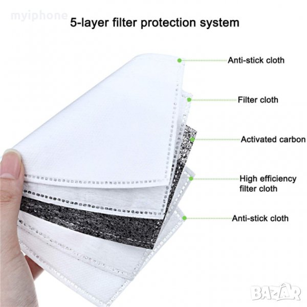 Филтър Защита 95% Активен Въглен PM 2.5 за предпазна маска за лице оргинал стандартни и детски