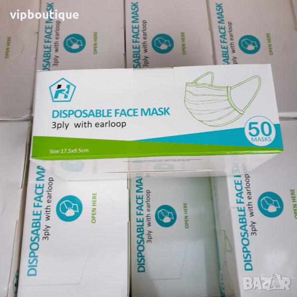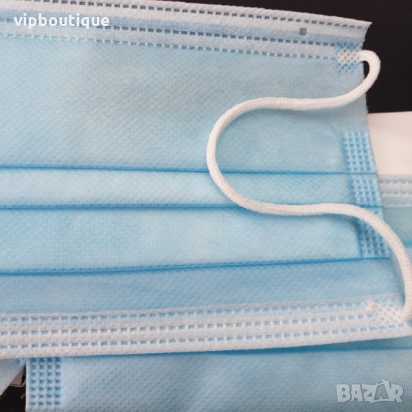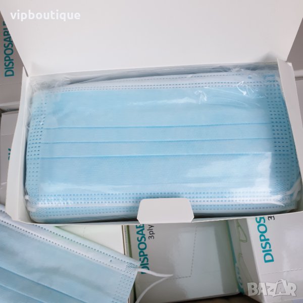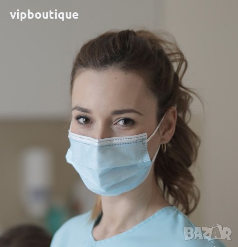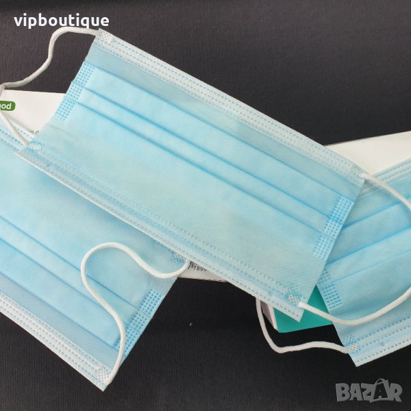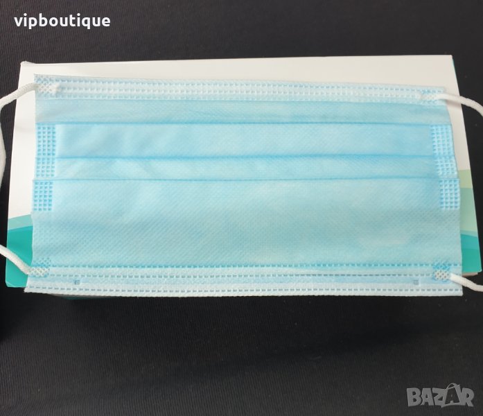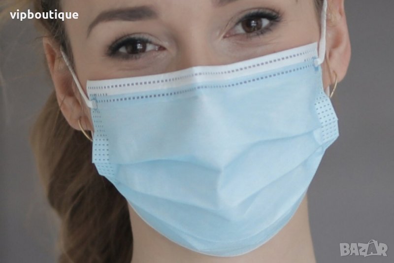 Истински висококачествени трислойни предпазни медицински маски за лице. Маските са трислойни с ластик и метална пластина - 50бр в кутия