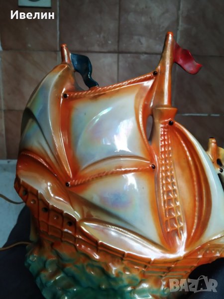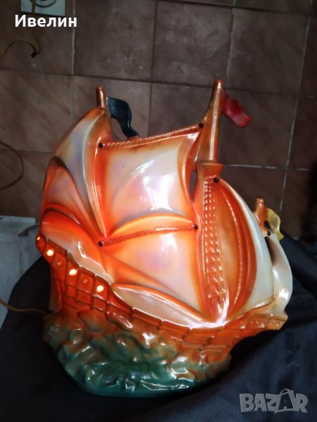ретро настолна лампа-кораб,порцеланов корпус с размери 28см/22см.състояние видно на снимките.