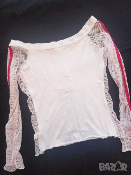 Спортна блуза, размер S, мрежести ръкави, голи рамене,еластична материя, бял и червен цвят.